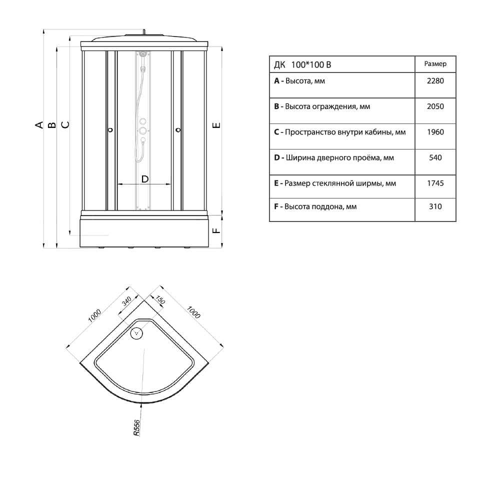 —Душевая кабина РИФ В3 1000х1000 полукруглый средний поддон, стекло Грейс, профиль белый, ДН4 ТРИТОН (кабина/7мест+сифон D50мм)