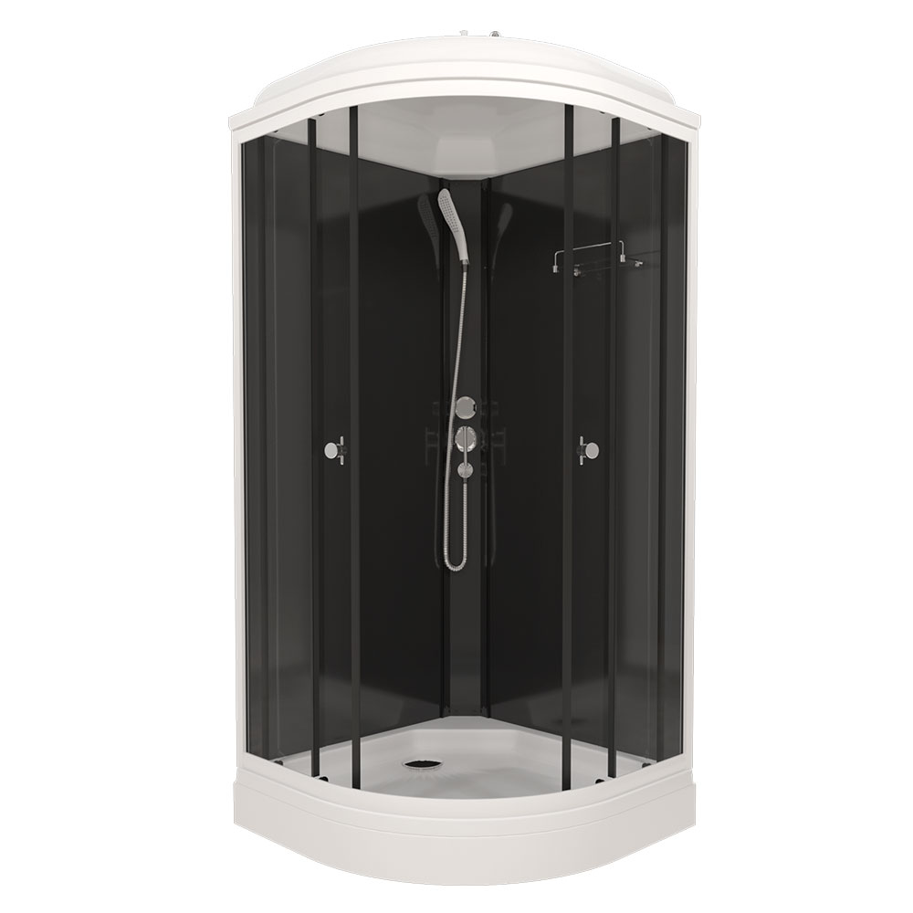 Душевая кабина ТОП А3 900х900 полукруглый низкий поддон, профиль черный, прозрачные стекла, черные задние стенки ДН4 ТРИТОН (кабина/7мест+сифон D50мм)