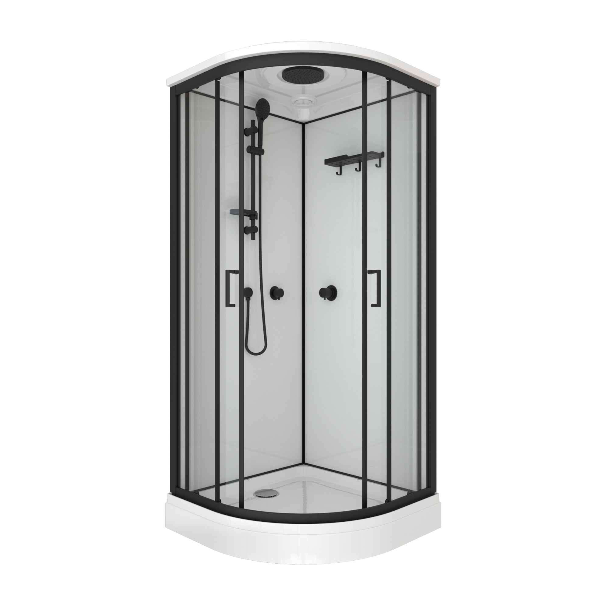 Душевая кабина ПРАЙМ-БЛЭК М3 900х900 полукруглый низкий поддон, стекло Прозрачное, профиль черный, белые задние стенки, ДН9 ТРИТОН (кабина/3места)
