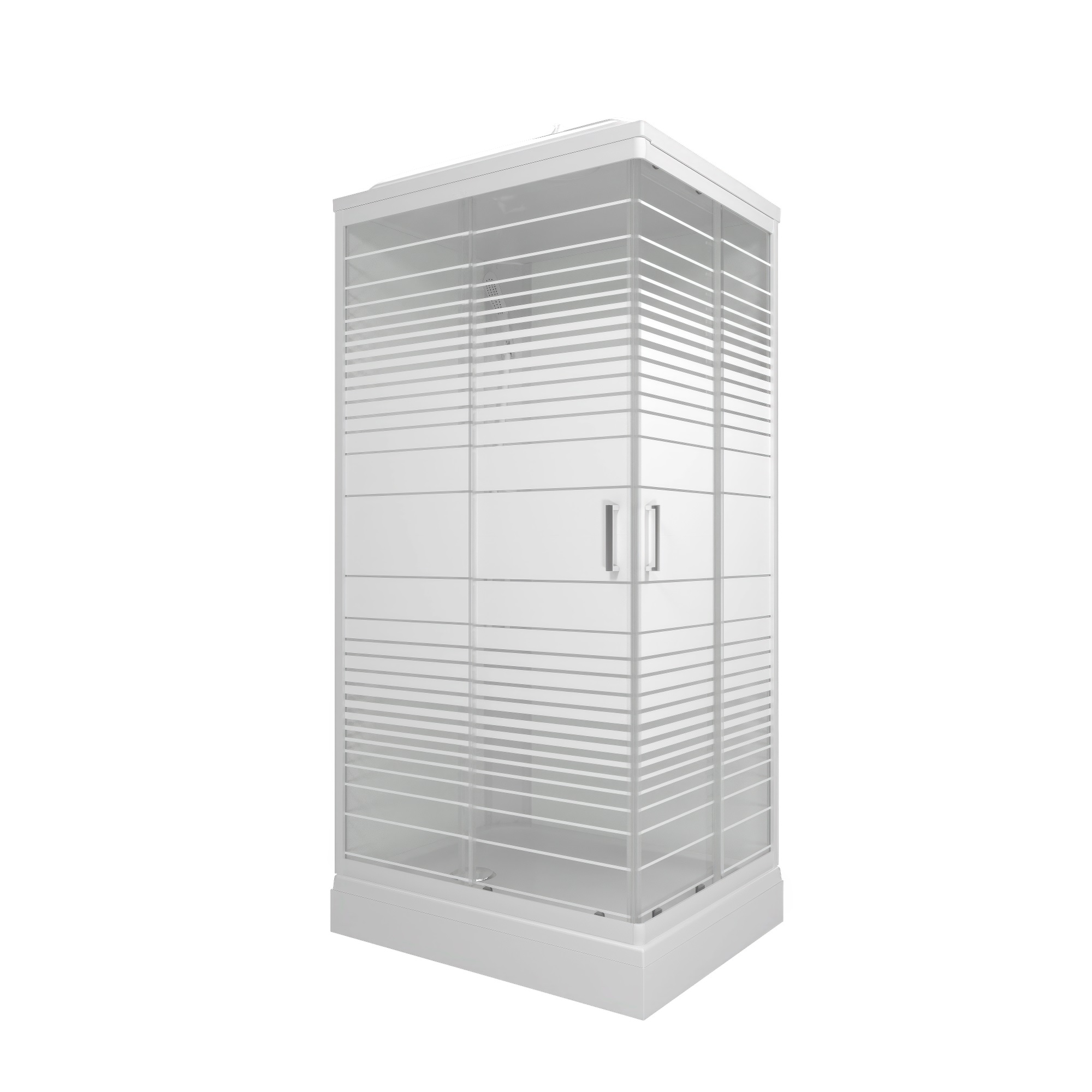 —Душевая кабина КВАДРО А3 1200х800 прямоугольный низкий поддон, стекло Полосы, профиль белый, ДН4 ТРИТОН (кабина/8мест)