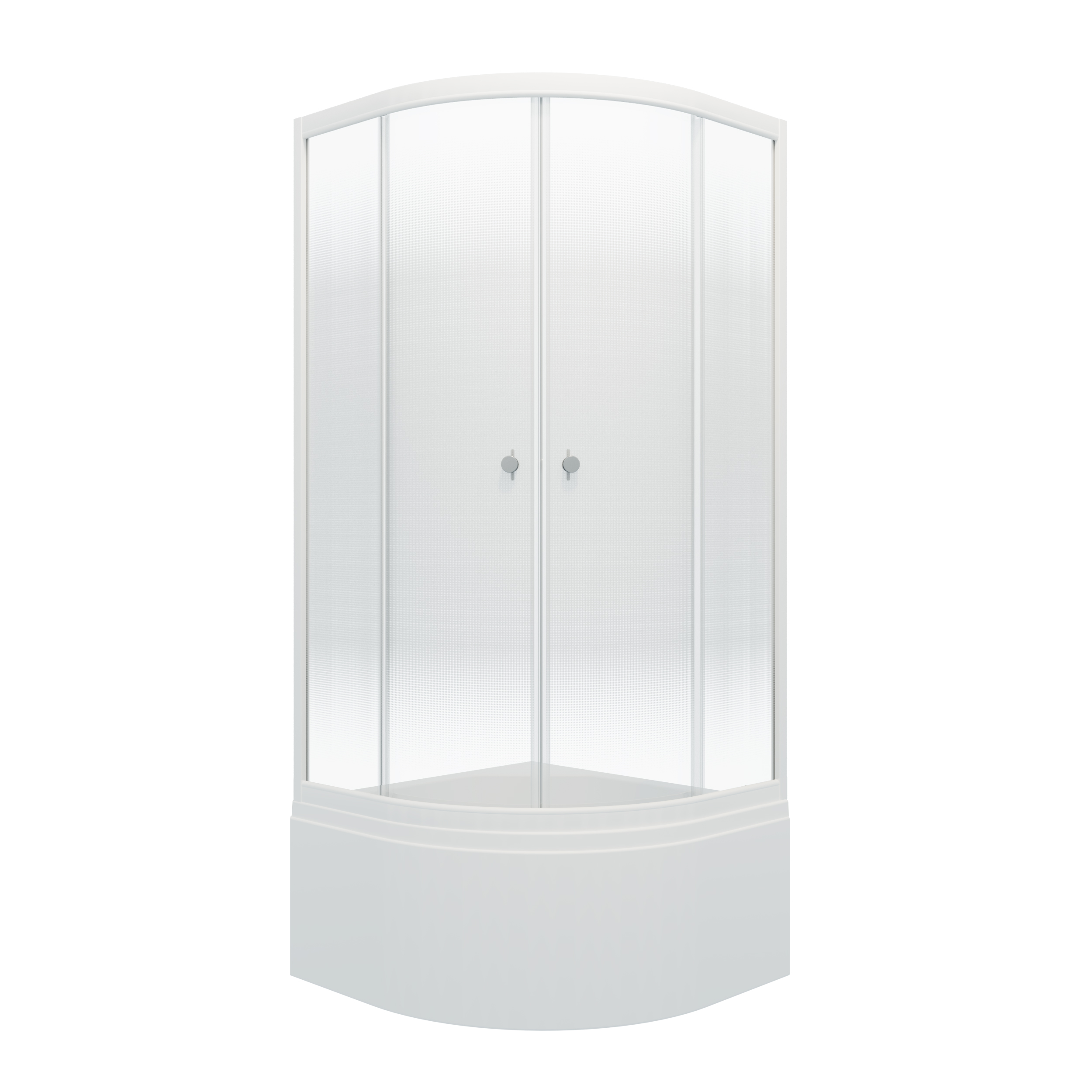 —Душевое ограждение ЛАЙТ Б1 900х900 полукруглый глубокий поддон, стекло Градиент, профиль белый ТРИТОН (ограждение/5мест+сифон D50мм)