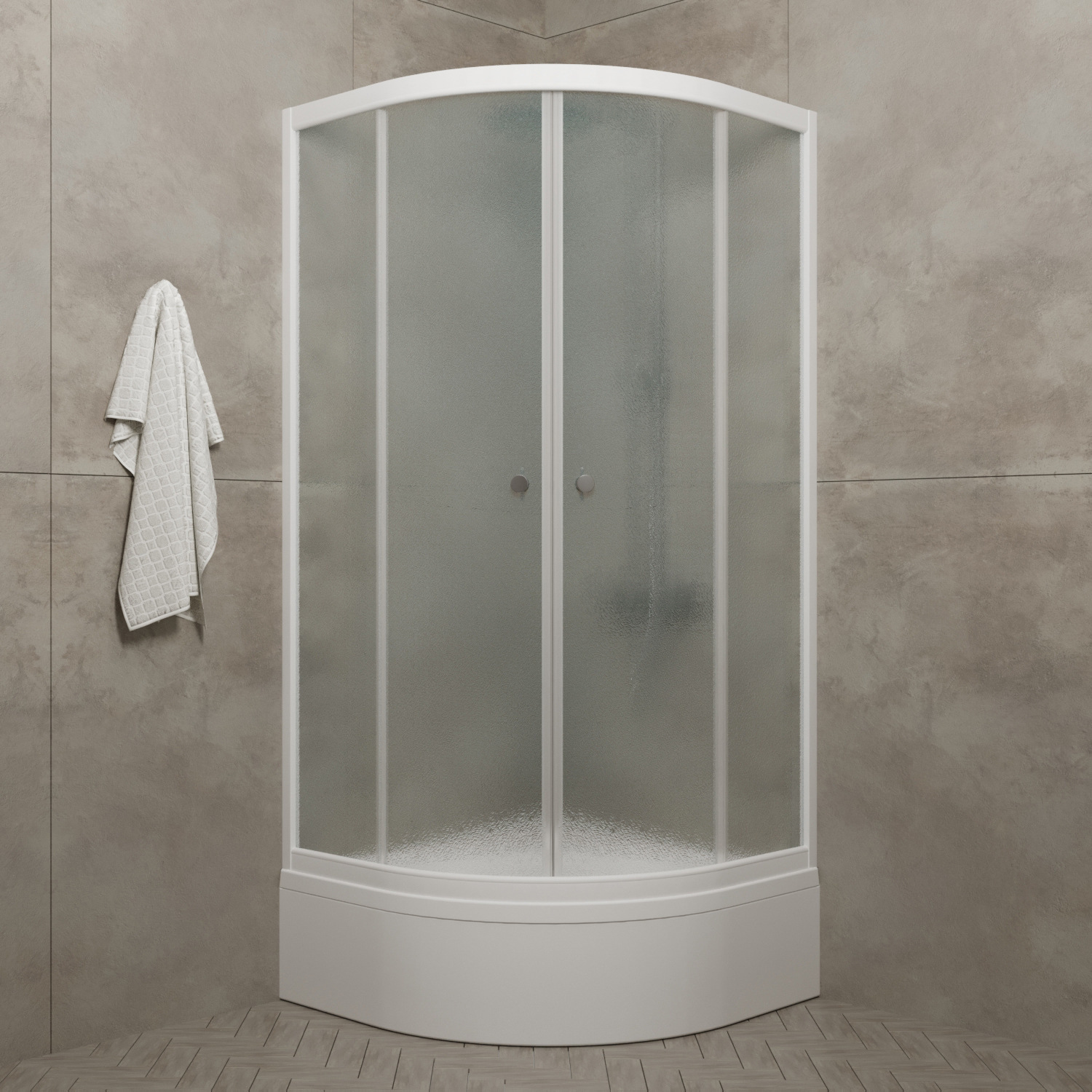 Душевое ограждение РИФ В1 1000х1000 полукруглый средний поддон, стекло Грейс, профиль белый ТРИТОН (ограждение/3места+сифон D50мм)