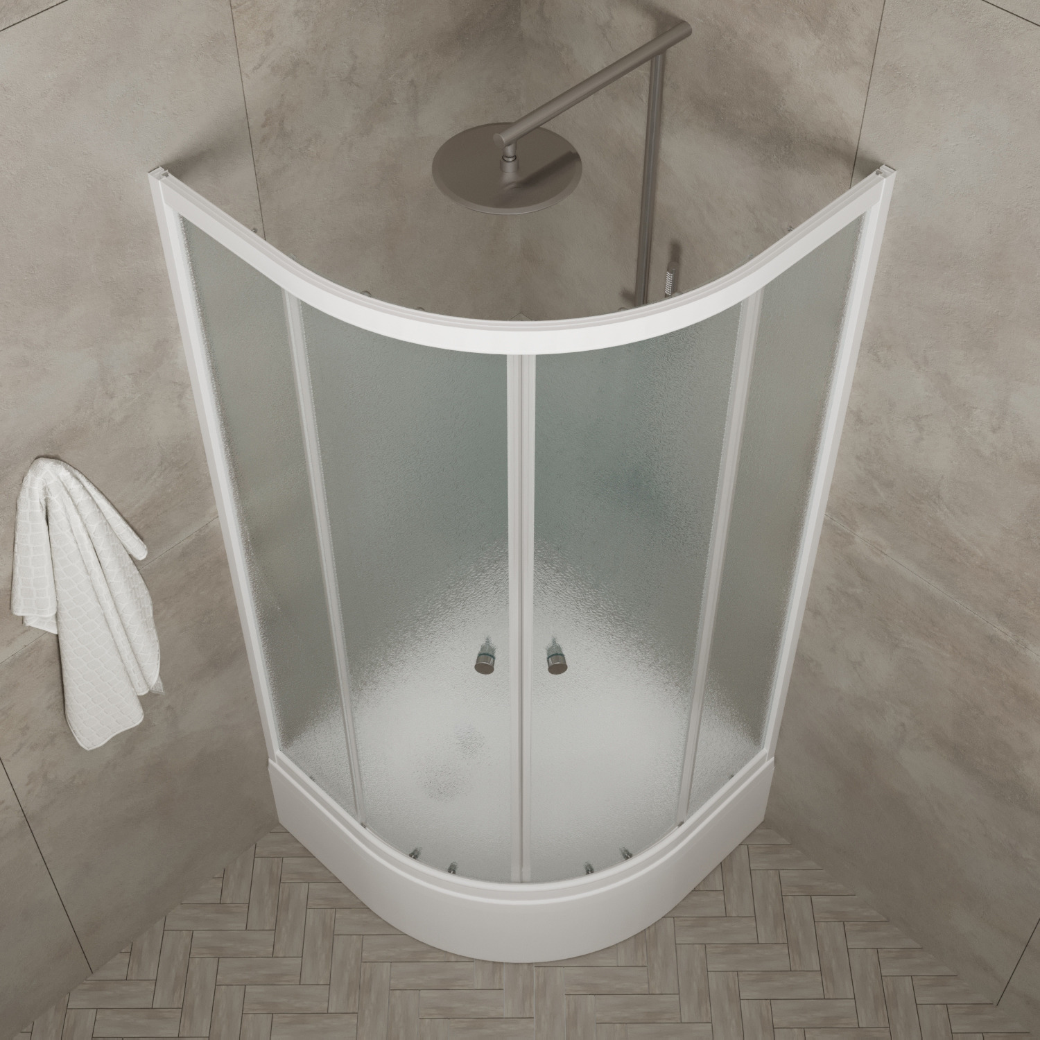 —Душевое ограждение РИФ В1 1000х1000 полукруглый средний поддон, стекло Грейс, профиль белый ТРИТОН (ограждение/3места+сифон D50мм)
