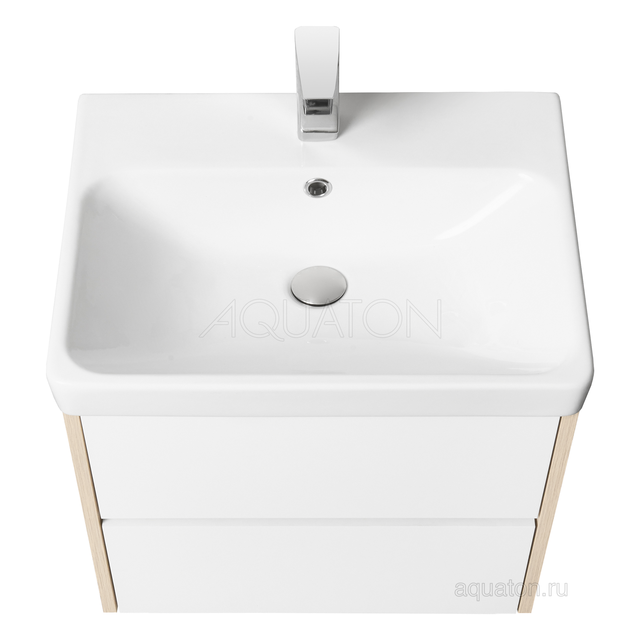 Тумба под раковину Aquaton Сканди 70 белая/дуб верона, подвесная, 2 выдвижных ящика, с механизмом Push-to-open, 59,1х68,2х42,7, под умывальник Адриана 70