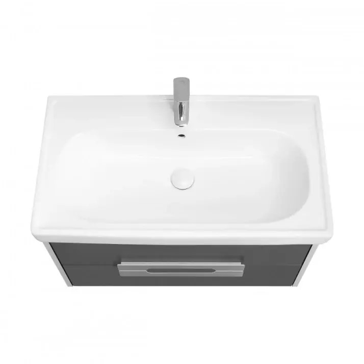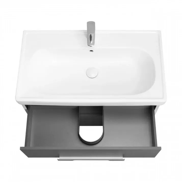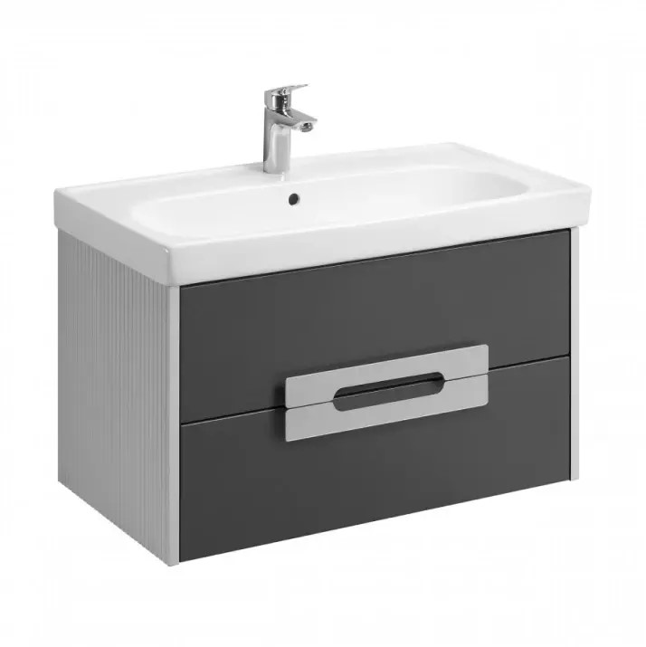 —Тумба под раковину Aquaton Ар-Деко 85 2 ящика, 450х806х453 мм, цвет серый кобальт, под умывальник Нео Классик