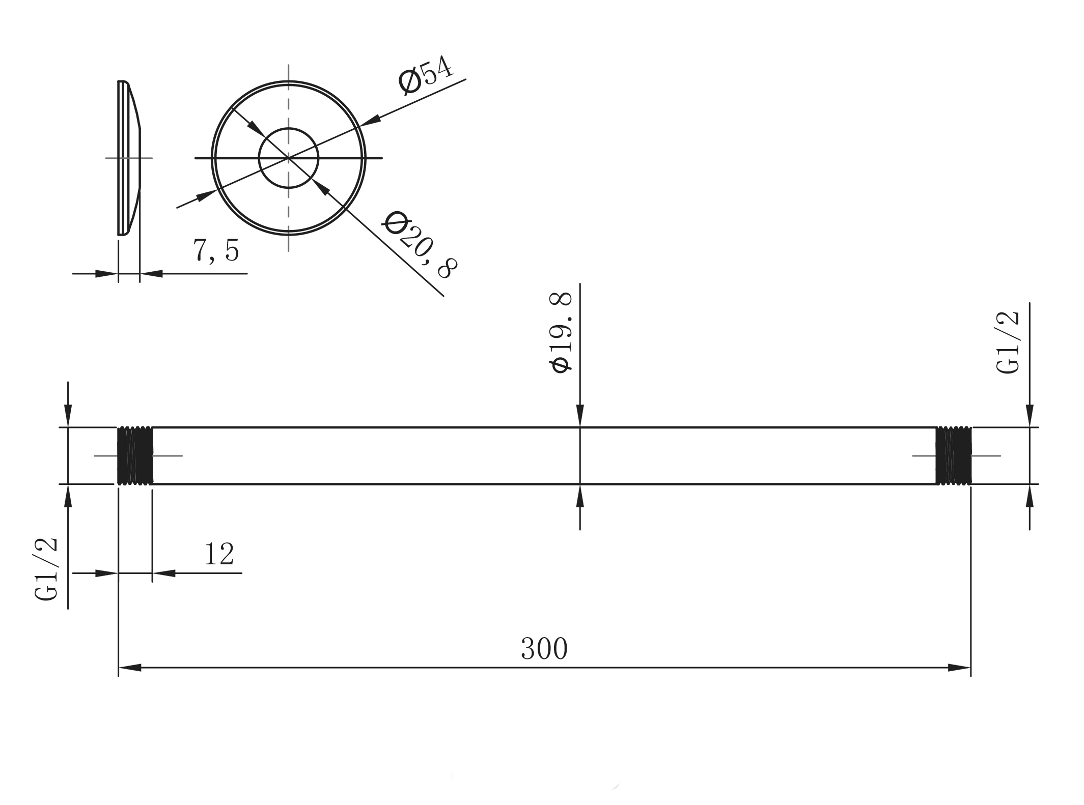 Держатель для лейки, потолочный 300 мм, хром, блистер LEMARK