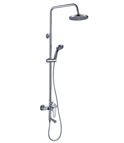 —Душевая система со смесителем, поворотный излив 97мм (штанга, ручной переключатель, 5-функц.лейка, верхний душ ф200мм, шланг) RoSSinka