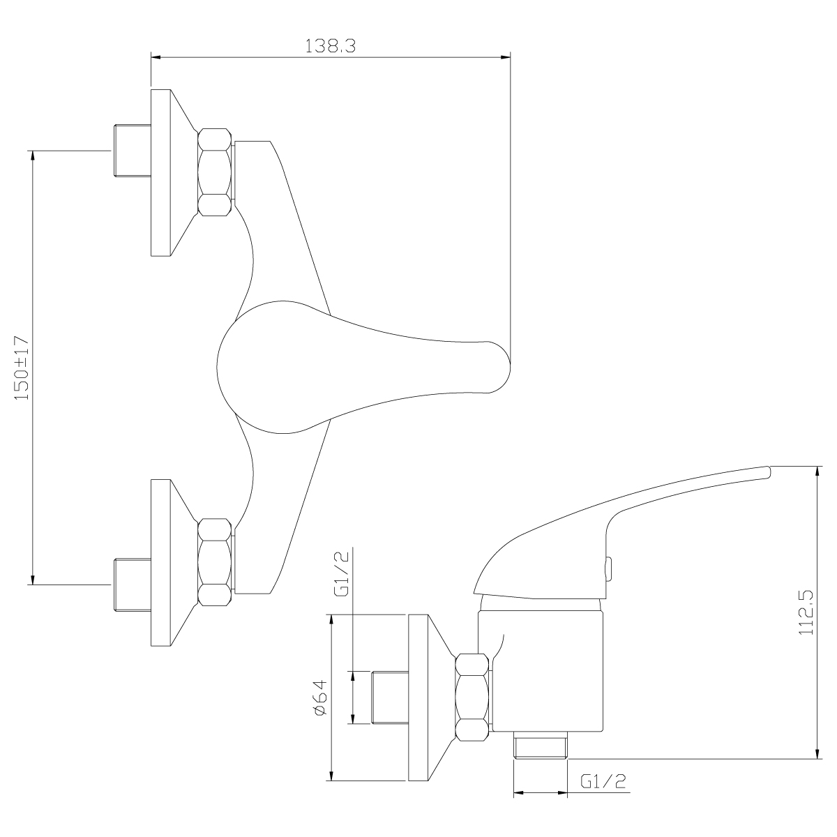 —Смеситель одноручный для душа, картридж 40мм, RoSSinka SILVERMIX