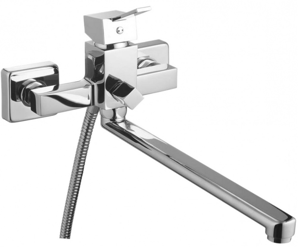 "Старк" смеситель для ванны, излив 300мм, переключатель с керамическими пластинами, картридж 35мм, с аксессуарами, хром ZENTA