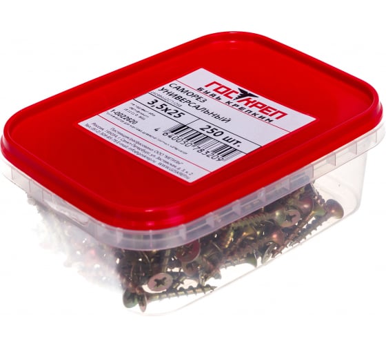 Саморез унив. дерево/ДСП/OSB 3,5х25 (250 шт), ГОСКРЕП-пл.конт 280 мл