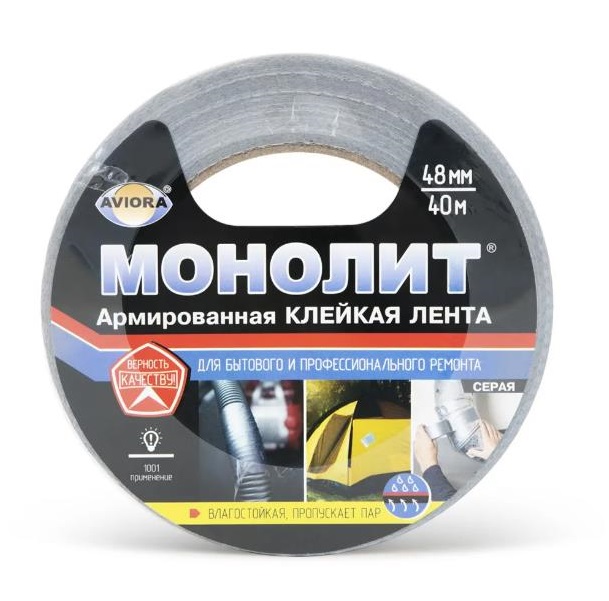 —Лента AVIORA МОНОЛИТ армированная самоклеящаяся 48 мм х 40 м, серебристо-серая