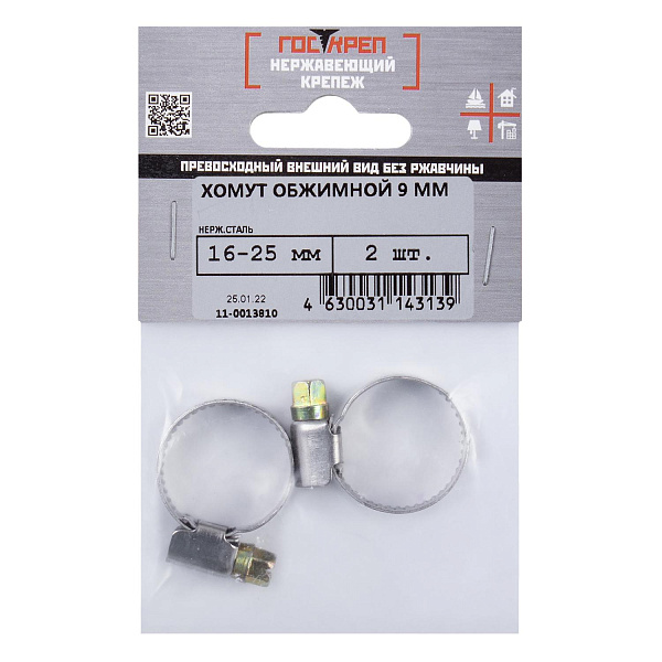 Хомут обжимной 9 мм нерж.сталь 16-25 мм (2 шт), ГОСКРЕП-подвес