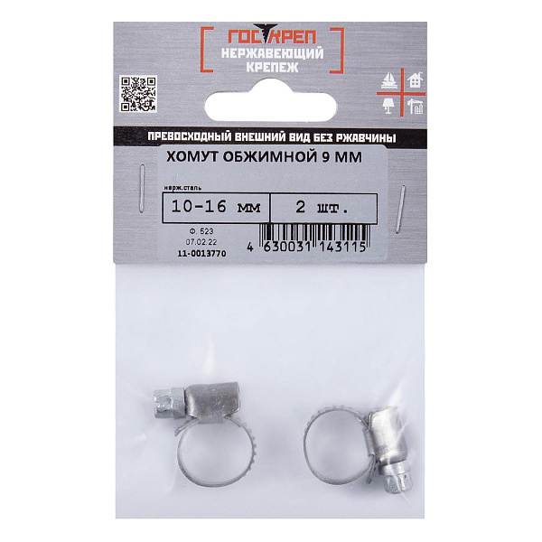 Хомут обжимной 9 мм нерж.сталь 12-20 мм (2 шт), ГОСКРЕП-подвес