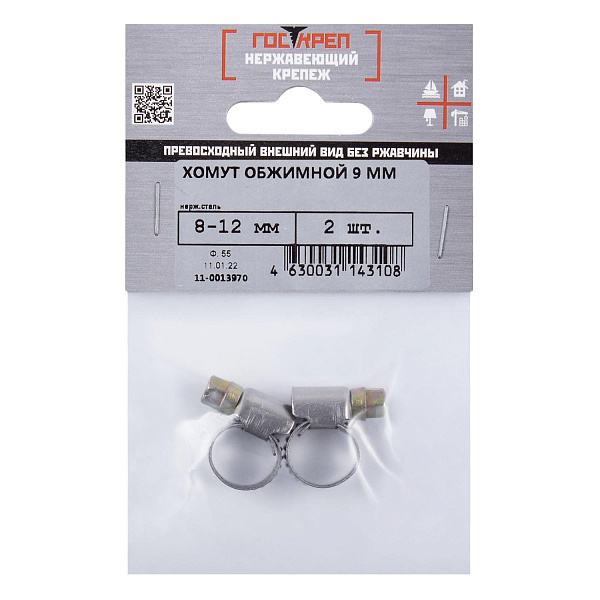 Хомут обжимной 9 мм нерж.сталь 8-12 мм (2 шт), ГОСКРЕП-подвес