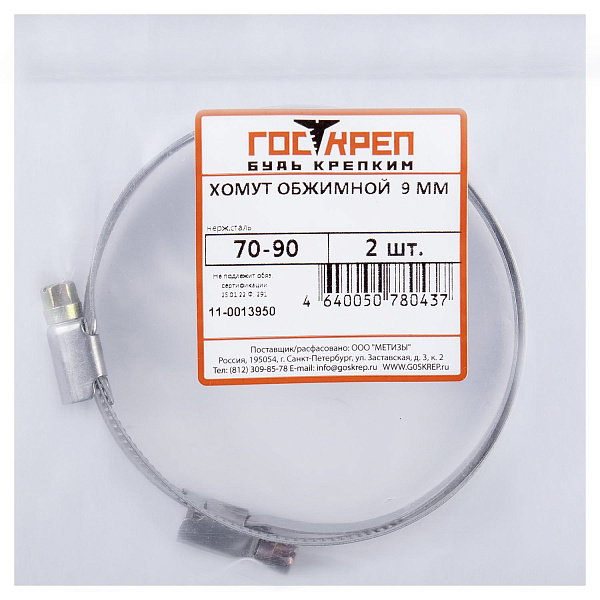 Хомут обжимной 9 мм нерж.сталь 80-100 мм (2 шт), ГОСКРЕП-пакет