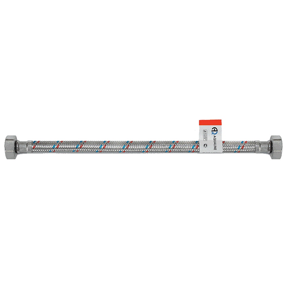 Гибкая подводка – современный подход к решению задачи водоснабжения помещений жилого дома. Гибкая подводка для воды позволяет подключить по месту смесители, биде, стиральные и посудомоечные машины, унитазы, бойлеры, душевые кабины и газовые колонки. Гибкая подводка для воды AQUALINE предназначена для подсоединения бытовых и сантехнических приборов в системах горячего и холодного хозяйственно-питьевого водоснабжения. Внутренняя трубка гибкого шланга изготовлена из этилен-пропиленового каучука СКЭП (EPDM), покрытого оплеткой из восьми стальных нитей (нержавеющая сталь 08Х18Н10 (AISI 304)). Концевая арматура выполнена из никелированной латуни ЛС59-2 (CW617N), а соединительный штуцер – из латуни ЛС59-3 (CW614N). Благодаря использованию качественных материалов гибкая подводка AQUALINE отличается надежностью и долговечностью.