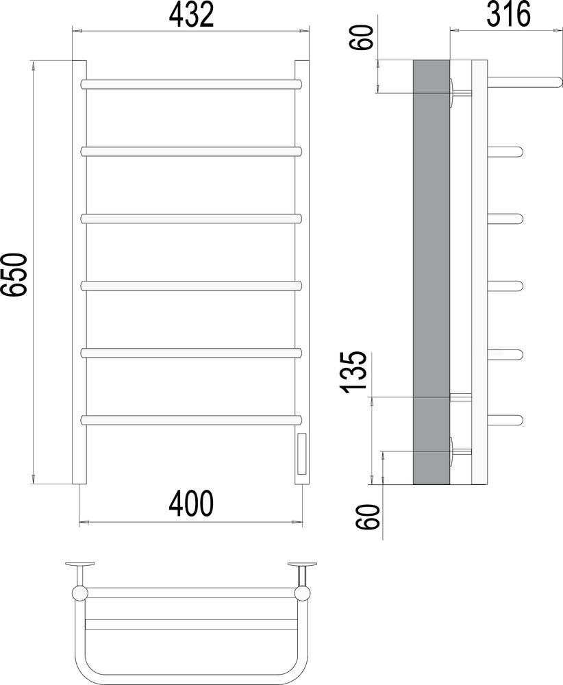 Электрический полотенцесушитель П6 Полка 400х650 (quick touch), 432х650х400 мм