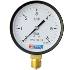 Приборы, измеряющие давление жидкости или газа. Принцип действия манометров основан на уравновешивании измеряемого давления силой упругой деформации трубчатой пружины или более чувствительной двухпластинчатой мембраны, один конец которой запаян в держатель, а другой через тягу связан с трибко-секторным механизмом, преобразующим линейное перемещение упругого чувствительного элемента в круговое движение показывающей стрелки. Под давлением среды консольно расположенный конец трубки Бурдона перемещается - трубка старается распрямиться. Величина этого перемещения пропорциональна величине давления. Несложная рычажно-зубчатая передача приводит в движение стрелку, указывающую на шкале прибора величину давления. Для увеличения срока службы прибора и защиты его от вредных воздействий высокого давления, температуры и пульсаций необходимо использовать дополнительное оборудование, такое как трехходовые краны, вентили, импульсные трубки.