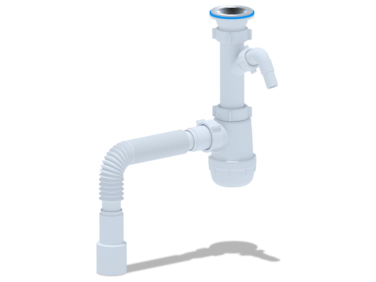 —Сифон для умывальника 1 1/2"*40 бутылочный, нержавеющий выпуск, с отводом для стиральной машины, гофрированный слив 40*40/50 в комплекте АНИ пласт