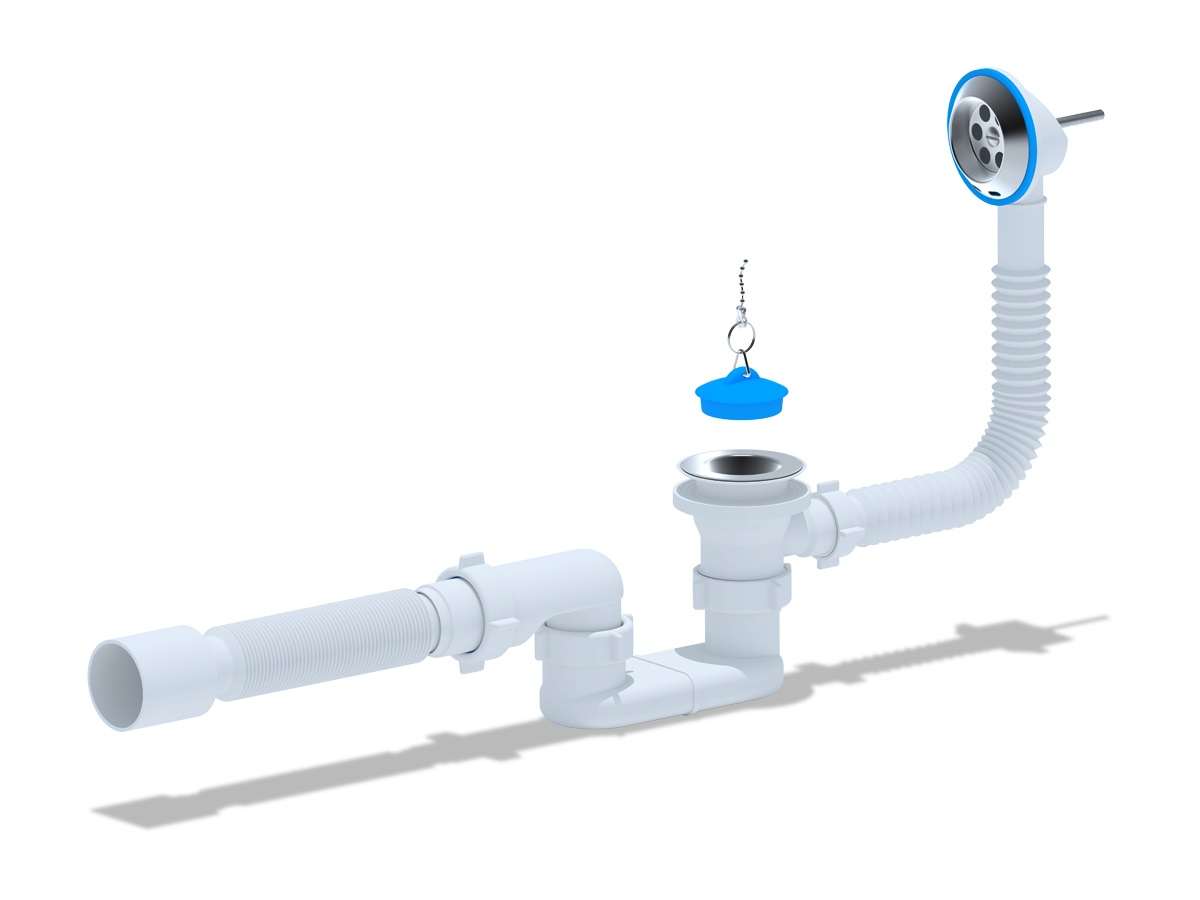 —Сифон для ванны плоский с нержавеющим выпуском 1 1/2"*40, с переливом, гофрированный слив 40/50 в комплекте АНИ пласт