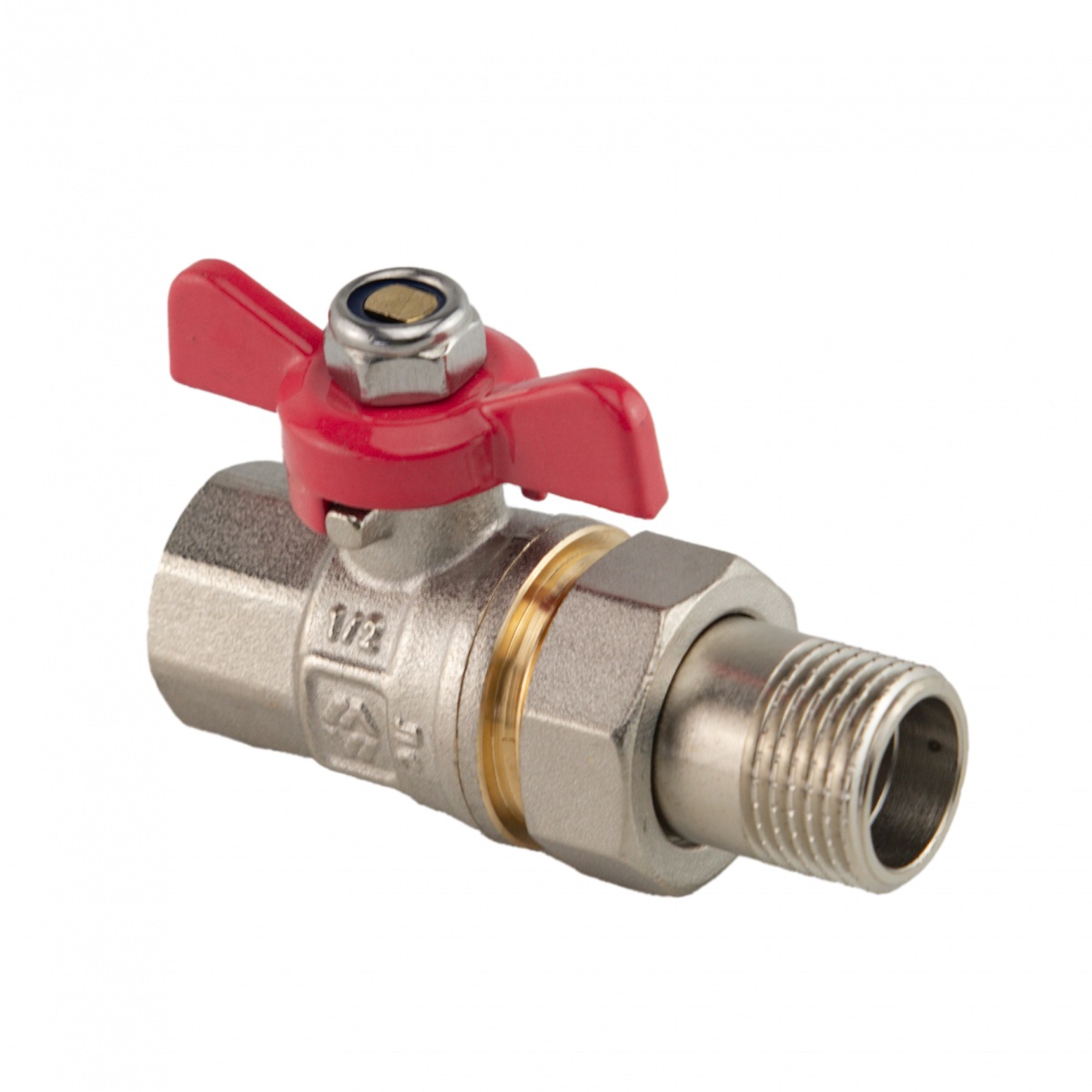 Кран шаровый латунный Ду15 с полусгоном. полнопроходной с ручкой-"бабочкой", Tmax=120С, Ру40, ремонтопригодный MVI ГОСТ