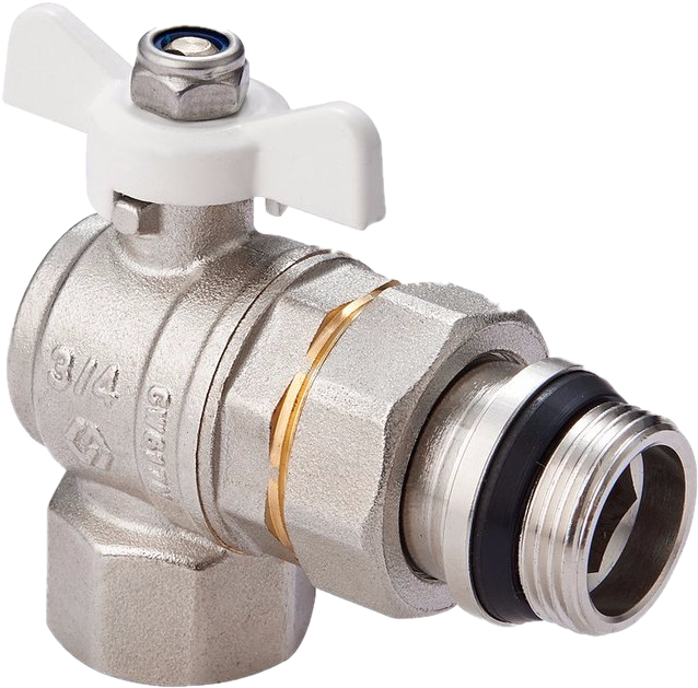 —MVI PREMIUM Кран шаровый латунный Ду15 угловой с полусгоном и самоуплотняющимся кольцом, полнопроходной с ручкой-"бабочкой", Tmax=120С, Ру40, ремонтопригодный
