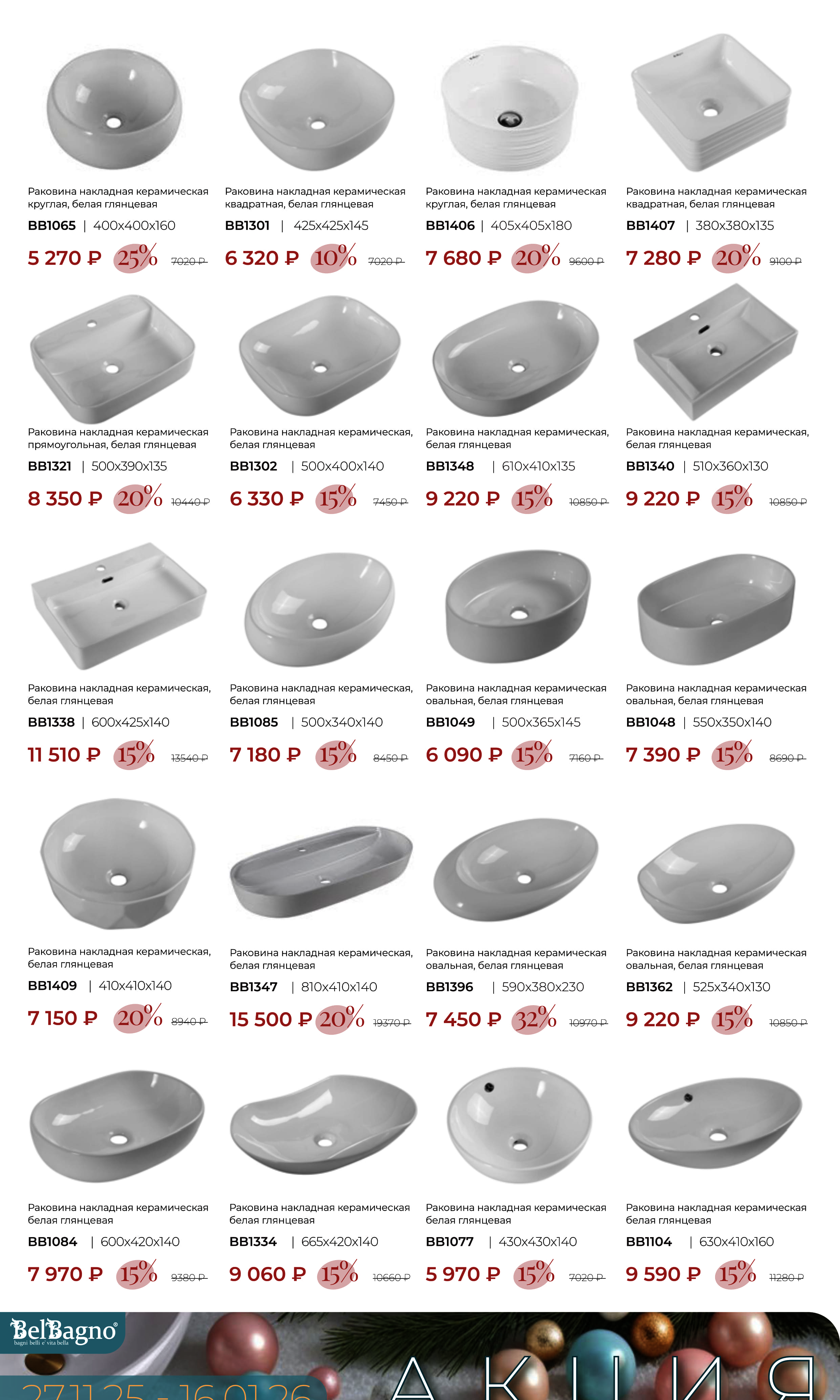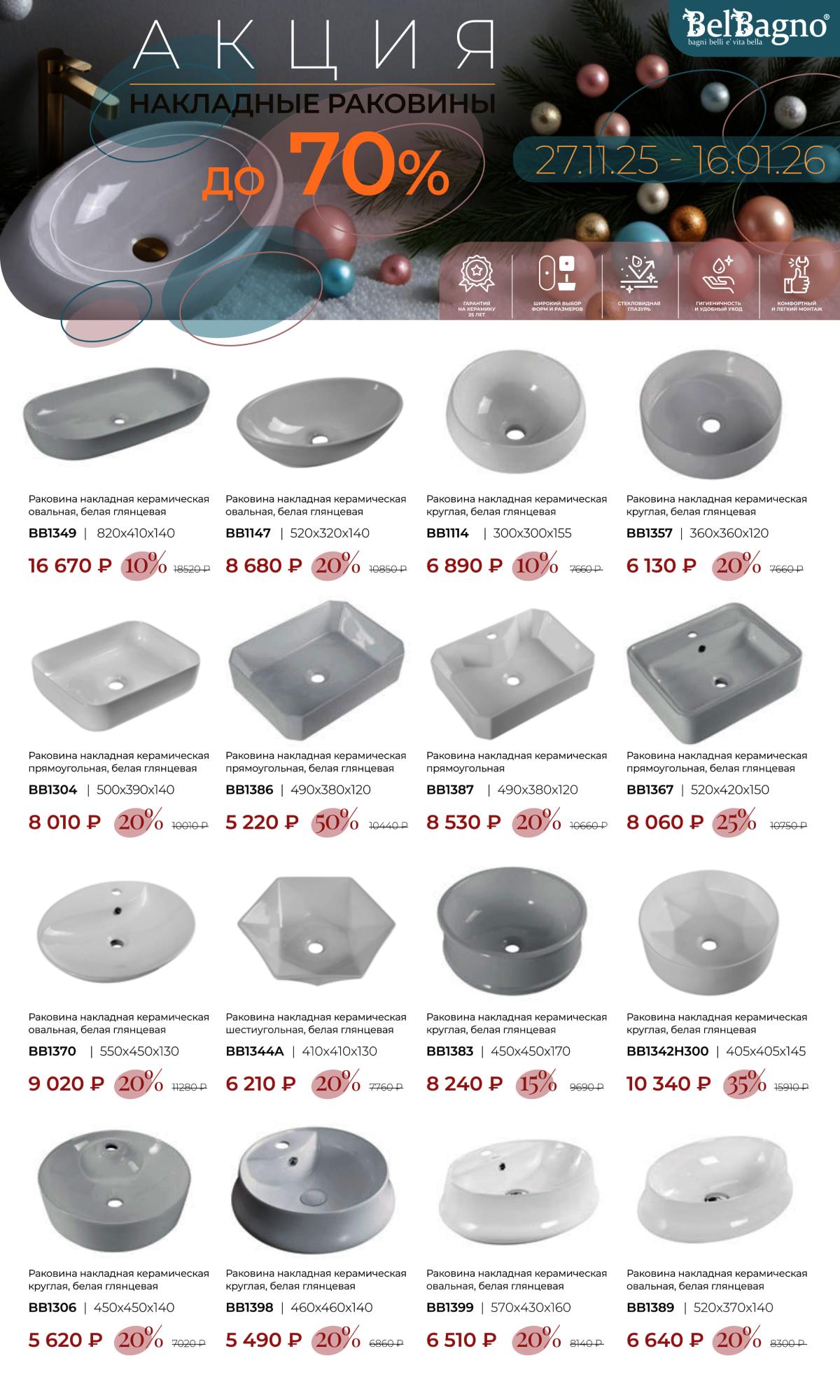 —Акция BelBagno накладные раковины 27.11.25 по 16.01.26